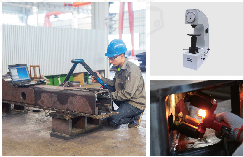 公司拥有碳硫分析仪、拉伸试验机、三坐标测量仪、磁 粉及超声波探伤等多种质量检测设施,保证从原材料、 性能、产品尺寸到焊接质量等各类质量指标的检测要求。